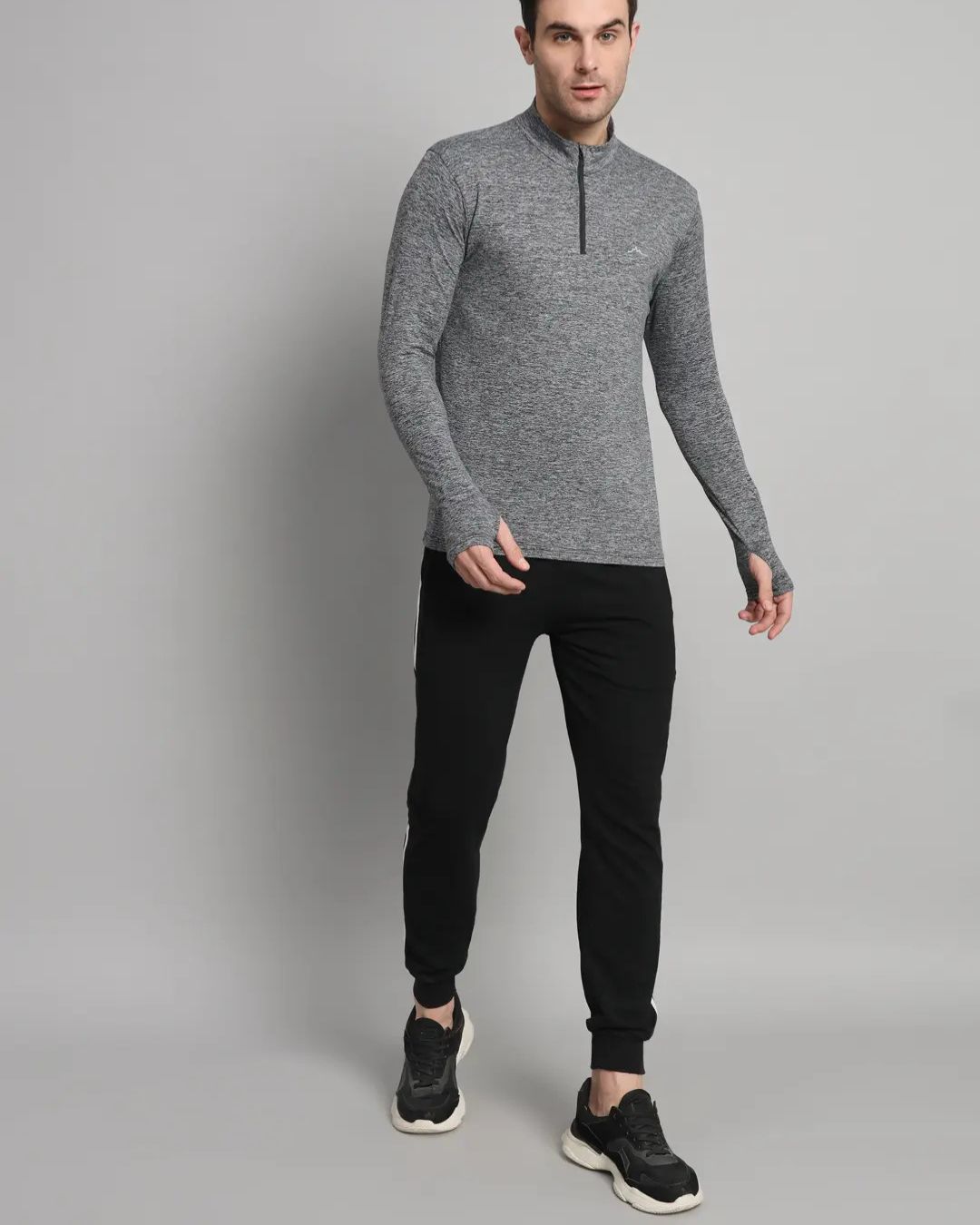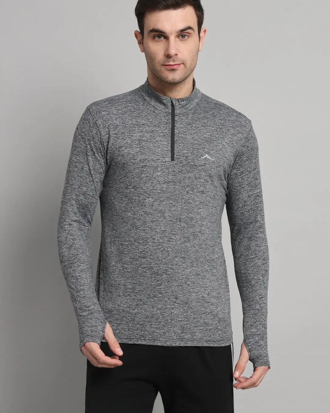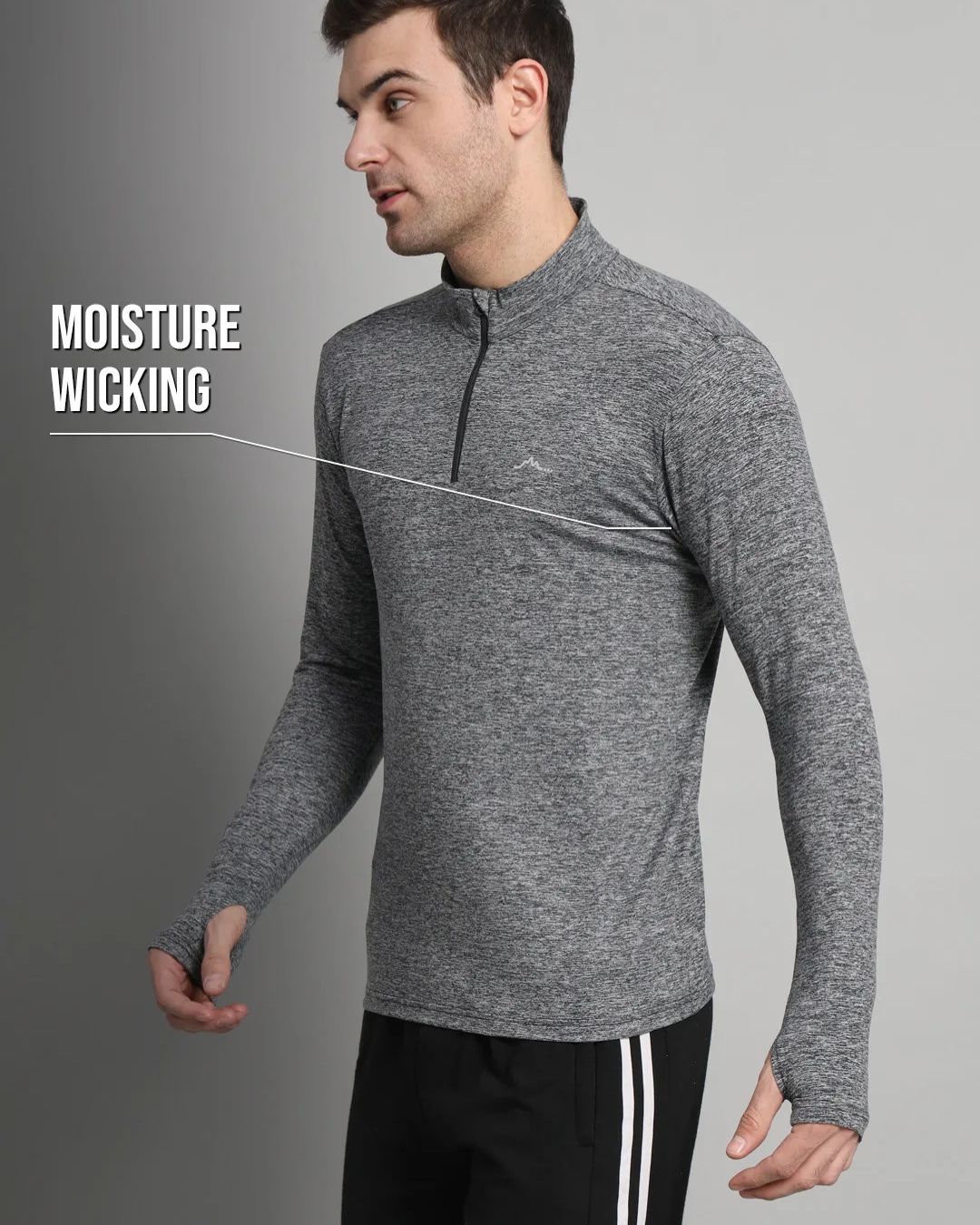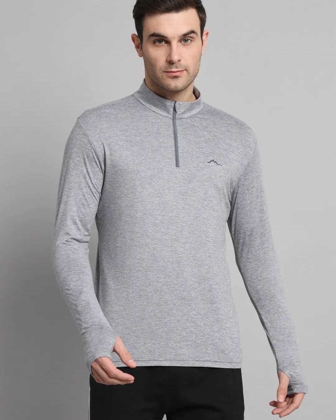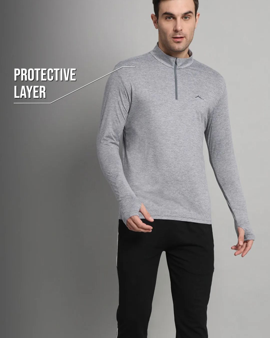 Soft, stretch-knit fabric delivers flexibility, traps warmth, and wicks sweat to keep you dry. Full-sleeve coverage with thumbholes protects from sun and cold, while the functional half-zip offers easy venting or wind protection—an all-weather essential.