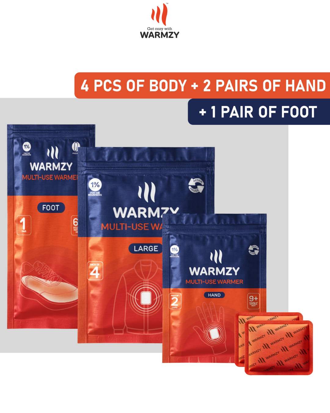- Combo Pack Contents » Large Warmers: 4 pcs | Hand Warmers: 2 pairs | Foot Warmers: 1 pair